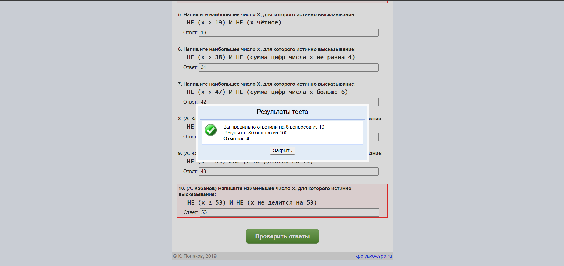 Итоговый экзамен Алексея